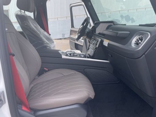 奔驰G63 (配置|询价) 23款 韩版 配置:GT按键,AMG10辐轻合金轮毂;红色卡钳,红色安全带,AMG菱形格座椅;前/后排座椅加热;前座椅通风;前排座椅按摩、多轮廓座椅、独家钢琴漆装饰;天窗;3区空调;氛围灯、Burmester音响系统;带 360°摄像头的停车包;宽屏;多功能真皮加向盘;多光束LED大灯;主动车道保持辅助;主动刹车辅助;主动距离辅助系统;注意力监测;主动泊车辅助系统;车道保持辅助;预安全防护系统、后拖钩。(实木内饰,同色车身备胎罩)