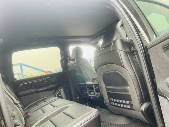 全新23款道奇公羊霸王龙TRX在内饰部分进一步强化了其高性能版本的形象,中控台和座椅随处可见的TRX标识便是最好的例证。同时,作为道奇家族的旗舰车型,新车还配备了12英寸竖置中控屏幕,除了支持蓝牙、导航和车载Wi-Fi等常见功能,还支持Apple CarPlay和Android Auto手机映射。