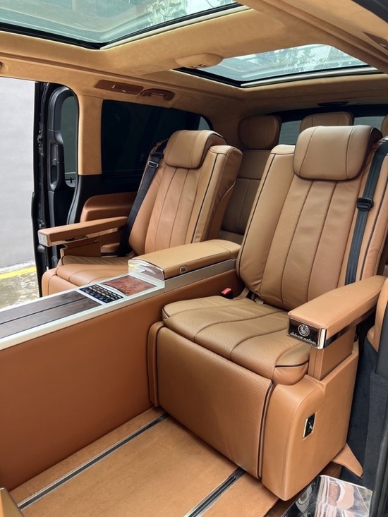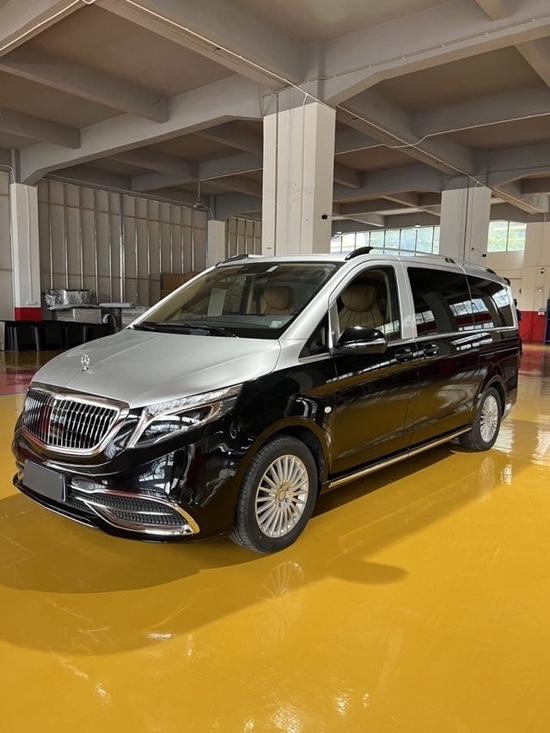 奔驰迈特斯黑/棕,配置:迈巴赫包围,LED大灯等,桃木内饰,大屏 环影 电视小桌板,高级音响,二排电动腿托脚通风按摩航空座椅,三排座椅床,电尾