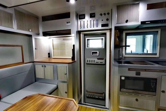 进口四驱乌尼莫克U4023在动力方面,200L油箱,以及一台4.8L的柴油涡轮增压发动机,搭配UG100-8型可自动/手动切换,8前进挡,6倒挡变速箱,而且还带爬坡档和一体式分动箱。218匹马力,在1200-1600转时就能达到810牛米的最大扭矩,这样的动力系统,绝对是一越野悍将!厨房区域的设备也是一应俱全,65升的德国品牌车载冰箱,电磁炉、排脱油烟机、日本品牌的微波炉,以及全套德国品牌厨具。此处还有不锈钢的洗菜盆以及冷热水龙头。一辆乌尼莫克越野房车吸引了最多的关注。毕竟,是个男人,都喜欢车,尤其是喜欢外形刚硬而且性能卓越的越野车。乌尼莫克,由于它是一种特种车辆当你还开着自己的SUV在考虑从马路牙子上下来会不会托底时,乌尼莫克应该正在荒无人烟的户外奔波风尘进行勘探作业。