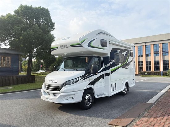 进口依维柯New Daily底盘的驾驶室体现的是精致和商务气息,尤其是戴德E途系列房车多以商务大气的稳重形象展示。新车搭载一款3.0T柴油涡轮增压发动机,匹配8AT变速箱,峰值扭矩430N·m,最大功率125kW。安全辅助系统方面,如胎压监测、防侧风系统、坡道辅助系统,自适应巡航,牵引力控制系统,自动大灯,自动雨刷器等等,可以说它的丰富程度在一些轿车上都少见,依维柯更多的是想让这款车底盘车型轿车化,以适应改装房车之后对应驾驶舒适性的考量。