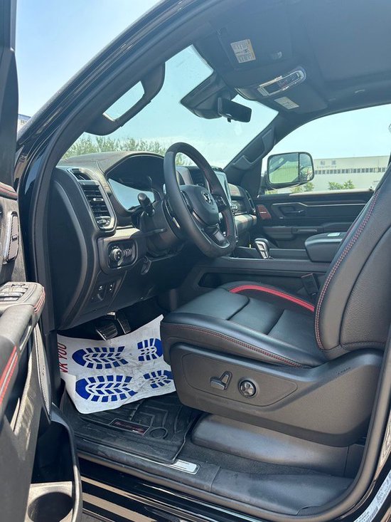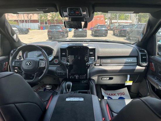 2023款道奇霸王龙内饰部分进一步强化了其高性能版本的形象,中控台和座椅随处可见的TRX标识便是最好的例证。同时,作为道奇Ram家族的旗舰车型,新车还配备了12英寸竖置中控屏幕,除了支持蓝牙、导航和车载Wi-Fi等常见功能,还支持Apple CarPlay和Android Auto手机映射。