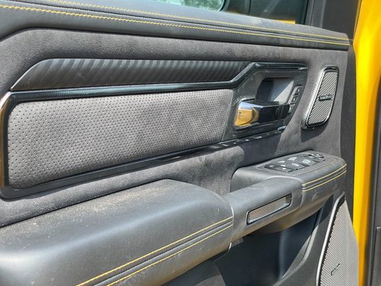 23款全新道奇霸王龙TRX在内饰部分进一步强化了其高性能版本的形象,中控台和座椅随处可见的TRX标识便是最好的例证。同时,作为道奇家族的旗舰车型,新车还配备了12英寸竖置中控屏幕,除了支持蓝牙、导航和车载Wi-Fi等常见功能,还支持Apple CarPlay和Android Auto手机映射。