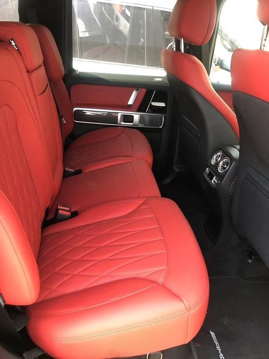 奔驰G63豪华精致的真皮包覆提供了足够的舒适性和支撑性,通风和加热功能让乘客免受高温和寒冷的煎熬。中控台多处均采用碳纤维材料覆盖,带彩色TFT显示屏的AMG仪表盘、AMG主菜单和单独的挡位显示器以及采用白色照明的AMG门槛。名贵的选材及精湛的内装令人拍案叫绝。