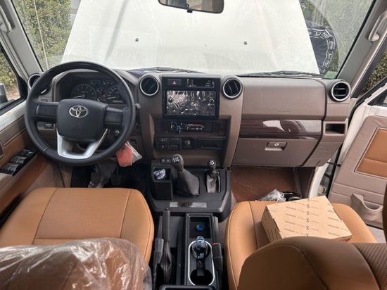 2023款丰田酷路泽LC76整体布局与老款车型设计风格相似,中控台按键不多,操作简单,同时为方便驾驶者员操作,均被安排在中控台左侧,光秃秃的四幅方向盘,与传统的手柄式手刹,这一切只为简单可靠,光秃秃的方向盘,没有豪华SUV那么多按键,没有定速巡航,一切只为简单可靠。