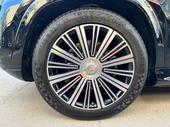23款迈巴赫GLS (配置|询价)600车身侧面,新车采用双色车漆喷涂,配备23英寸多幅熏黑轮毂,D柱之上镶嵌迈巴赫专属LOGO,同时车窗周边的镀铬装饰也凸显了尊贵的身份,整体的车身设计简洁而干练。车尾也采用了大量的镀铬装饰,GLS 600和Maybach英文标识所使用的字体样式相比以往车型质感更强。