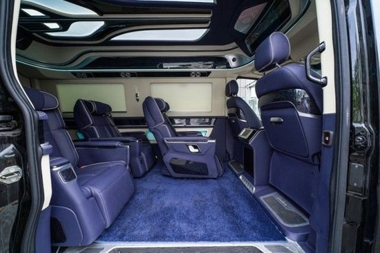 新款奔驰斯宾特本车采用全隔断设计,吧台的视觉效果和工艺都很棒,其中杯架来自意大利,iPad蓝牙键盘和鼠标。BOSE音响主机、吧台的灯光等都可以用iPad来控制开启。德国昂文德帝专为E350设计制造的多功能时钟,集时间、温度、湿度显示于一身,价格非常昂贵。随车自带的咖啡机、车载冰箱、酒·柜,贵宾接待时更添一份待客之道,也为个人出行时多一丝休闲之享,奔驰斯宾特商务车自带可升降的40寸液晶电视。