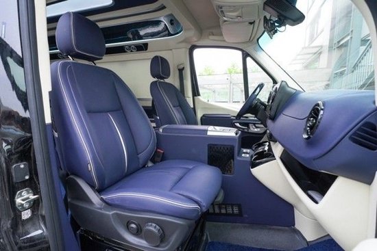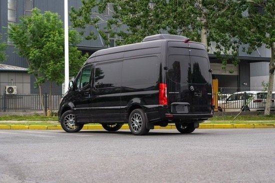 新款奔驰斯宾特车身尺寸长宽高:5.93*2.02*2.83米,汽油版,排量2.0T带涡轮增压,功率188HP(已测试,动力完全够用),油箱84L,变速箱9速自动变速箱。新款的斯宾特2500增加了无钥匙启动功能,驾驶室视野宽广,多功能方向盘真皮与桃木双拼,操控性好。新款奔驰斯宾特外观上变化最大的是前脸大灯,从敦厚演变成了运动,奔驰斯宾特的高为2米9左右,测身两边贴花让高大的车体不那么单调。原厂17的轮毂也被我们换成了19寸锻造轮毂,让宽大的车身行驶起来更加的安全可靠。