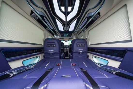 全新的奔驰斯宾特内饰升级版,那不得不提后舱两张豪华航空座椅,依据亚洲人身体形态定制而来,全部采用进口小牛皮包裹,填充物十分柔软。手枕处更选用了更为珍贵的鸵鸟皮皮质,天然的圆点与细腻的皮质给乘客足够的舒适感。靠背上装饰有“寸金寸锦”的云锦装饰,美若云霞!功能上航空座椅配有多向调节、加热通风、舒适腿托、电动电脑桌配套等高等级座舱实用功能。后排沙发床也可以随时电动放平,让车主享受旅途也享受生活。