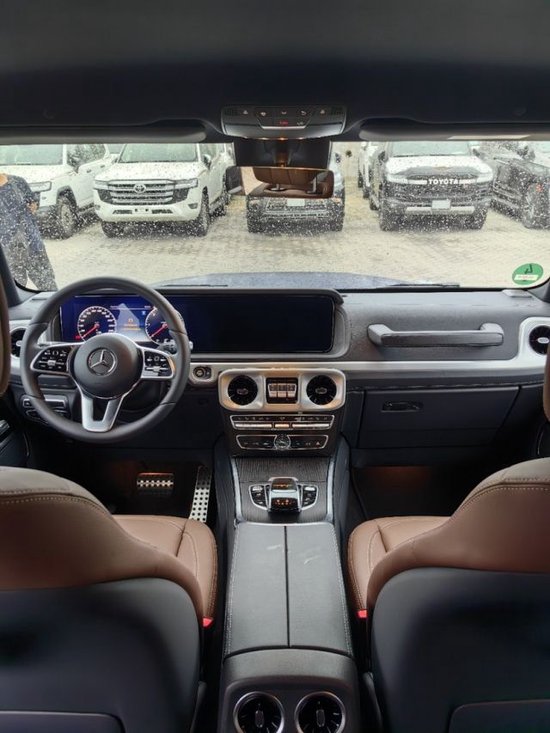 24款奔驰G400车身造型很简洁,均匀的漆面宛如原厂的原漆一样,这车相比之下协调,奔驰G400是柴油版的车,这款车力量大,而且还省油,续航能力要比汽油的大的多,这款车讲究的是可靠性和越野能力。