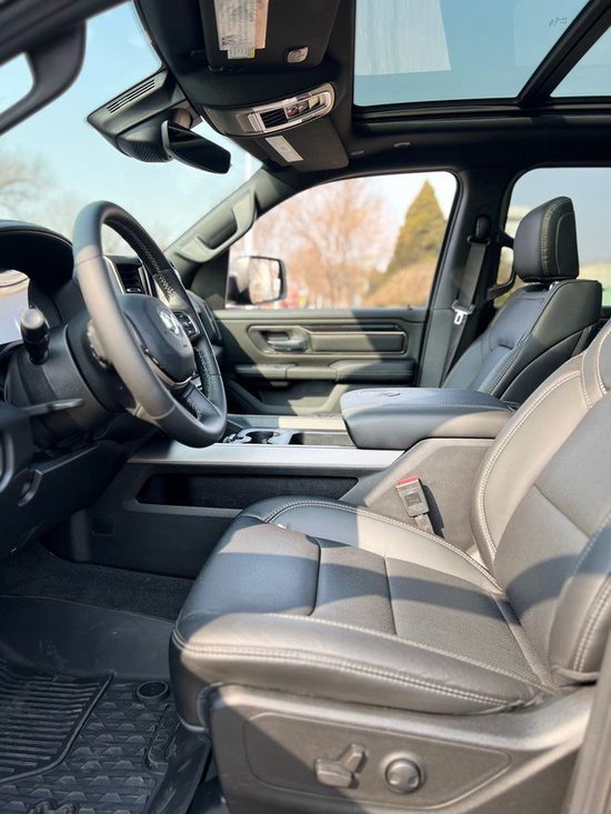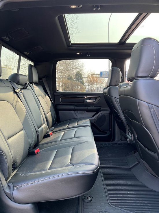 2022款全新道奇公羊运动版皮卡配备了克莱斯勒研发的HEMI-5.7升自然吸气发动机,最大功率283Kw,最大扭矩达到548Nm,道奇公羊真皮座椅摸起来十分舒适和细腻,很多细节地方也做得相当精致,后排座椅则有通风和加热设备,并且配备了一个小型存储工具箱,可见此款车的设置是十分人性化。