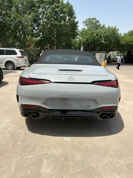 SL43外观和SL55/SL63 4Matic+两位大哥差别不大,车头同样配有Panamericana直瀑式水箱护罩,不过左右两侧下进气孔内部隔栅样式自原先垂直造型改换为SL43水平式样设计。 并标配19寸多辐造型铝圈,车主亦可选择八缸版本所匹配的20寸或21寸式样轮圈。 车尾部分SL43采用双边圆形四出排气尾管,迥异于SL55/SL63的矩形造型样式。