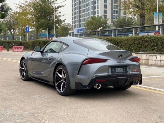 车辆尾部,其尾箱盖大幅度的上翘起到尾翼的效果,其尾灯组部分和后包围上的出风口相连接,同时尾部的 SUPRA 车标也变为红色,凸显出手动挡和自动挡车型的不同。此外,后包围下方的黑色区域带有扩散器的造型,配合双边共两出的排气布局,战斗感十足。尺寸方面,新车长宽高分别为 4381mm/1867mm/1310mm,轴距为 2470mm。