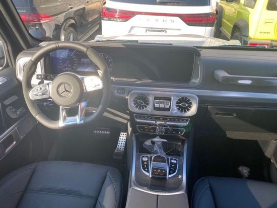 [22款墨版奔驰G63 (配置|询价) 226万] 银/黑 配置:金属漆、3把差速锁、电动天窗、21AMG轮毂、雷达测距、多光束LED大灯、LED日行灯、环影、并道、前后电眼、柏林之声音响、64色氛围灯、12.3 英寸全液晶中控屏、前排电动座椅带3组记忆、前座通风加热按摩、后座加热、三区空调、金属网格内饰、黑色翻毛皮内顶、AMG性能排气系统、Napa超细纤维多功能运动电调方向盘、小鼠标、自动启停、脚踏、电动折叠后视镜带奔驰地射灯、隐私玻璃。