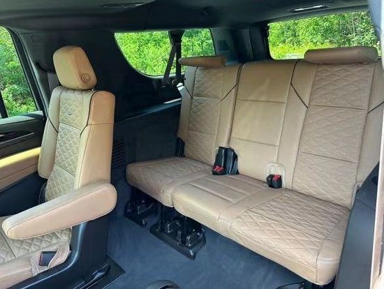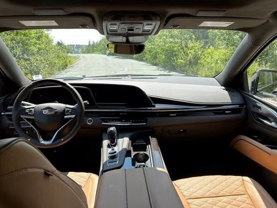 23款凯雷德的内部布局经过精心打造注重细节,以奢华面料、一系列的高科技创新奠定了基调。内饰的豪华程度可以与豪华轿车相媲美,最顶级的材质提供细腻触觉和精致观感。真皮桃木多功能方向盘可加热,仪表盘以业界首创的曲面OLED驾驶显示屏为主,它由三个弯曲的 OLED 显示屏组成,这些显示屏相互叠加,形成一个 38 英寸的酷炫组合数字空间,其中一些用作驾驶员的仪表盘,而其余的则投射 CUE 信息娱乐系统,科技感十足。