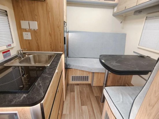 厨房区配置齐全,除了基础的厨房设施,还配备有98L房车专用冰箱,保障食材的新鲜,为用户提供更多想秀厨艺就秀厨艺的机会。