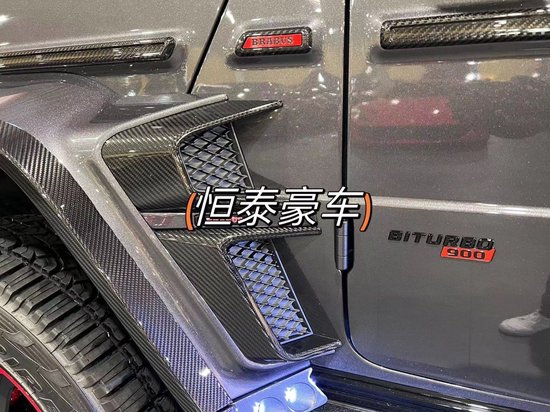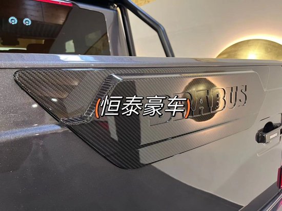 轮毂采用24寸Brabus Monobloc Z白金版单片式锻造轮圈,配有Aero-Disc碳纤维空力学装饰罩