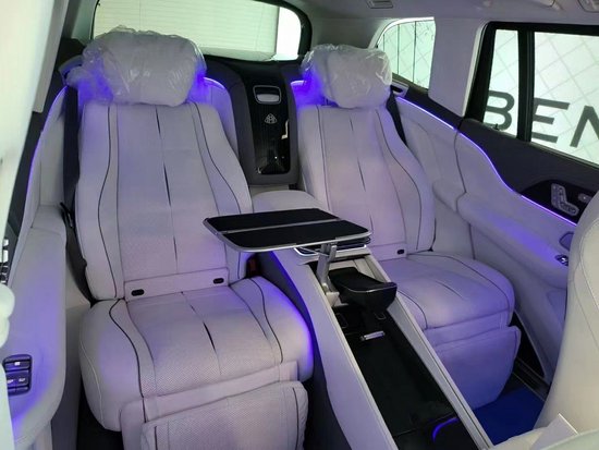 首发限量版标配:23轮,4座,冰箱,小桌板,VIP红魔毯香槟杯架 冷暖加热[选配黑钢琴流星雨烤漆内饰/钢琴桃木盘/主动降噪]4D大柏林音响1610千瓦,两个功放箱,带座椅(振荡器) 声学舒适包车内静谧无音。26种空气香氛平衡,全自动驾驶脱困模式,美规多环绕座舱加热四车门操控台加热 +扩展小牛 (配置|询价)皮强化了迷人的MAYBACH内饰美学。