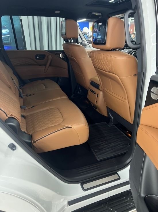 22款加版英菲尼迪QX80 Luxe 白棕 8座高配版 ProActive顶配,5.6升V8发动机,400马力,413磅-英尺,单屏12.3英寸信息娱乐触摸屏,苹果CarPlay和安卓Auto,盲点警告(BSW),牵引能力-8500磅,全景,真皮方向盘加热,10向电动驾驶员座椅带记忆,8向电动乘客座椅,英菲尼迪智能钥匙,按钮点火照明,远程遥启,三区空调,前排座椅加热,Bose 音响,17扬声器,后排娱乐系统,7座,22轮配有全天候性能轮胎,自适应自动调平大灯前照明系统,智能后视镜,智能巡航控制(全速范围),车道偏离预防,镀铬格栅包围,带有黑色网眼和下部保险杠,深色镀铬后尾门饰件,深色镀铬侧通风口,第二排船长椅可翻转,第三排可轻松进入,第二排长条座椅60/40分割折叠,空气净化器,盲点侧撞干预,车道偏离预防