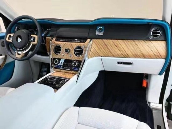2023款劳斯莱斯库里南车内,采用了大面积皮革和实木饰板搭配的中控台,辅以银色装饰条搭配,奢华庄重的感觉扑面而来。配合方向盘上的实木点缀,既复古又豪华。中控屏幕尺寸为10.2英寸的屏幕,轻触车门把手上按键就可以电动关闭,全液晶仪表盘采用三圆仪表设计,辅以虚拟表盘和指针,兼具现代化的科技感和典雅的复古风格。后排控制台与前部是断开的,在狭窄环境停车后排乘客可以选择任意一侧下车。车身侧面同样配有大量黑色元素,窗线、门把手、轮眉、底裙饰条都是黑色。每侧轮眉各往外突出了4厘米,轮毂尺寸24英寸,熏黑多条幅轮毂设计也很有型。新车依然采用了对开门的风格。后尾部饱满厚重,上方给到了碳纤维尾翼,尾窗下方及牌照区域上方都是黑色饰条。尾灯为竖条方形状,下方黑色包围加双边双出排气更显运动。