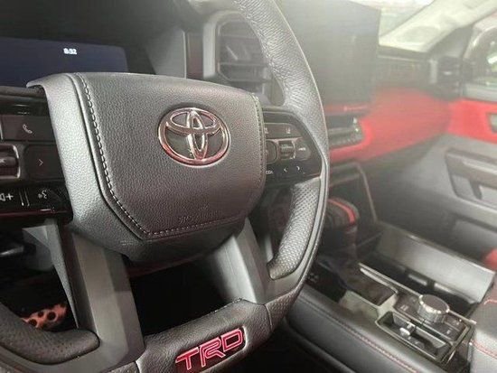 23款丰田红杉的内饰的实用性与空间利用率在这代红杉身上均得到提升,坐进车内,第一感受就是大,前排的两个大尺寸的真皮座椅,自带打孔透气皮料,四幅式多功能方向盘,握在手里的质感不错,转向也没有想象那么重,T型的中控平台,尺寸方面也比一般车型大不少,14英寸的中控触摸屏,集成了几乎所有的影音娱乐以及车身控制功能。更多咨询请致电刘经理15222407919《同微信》