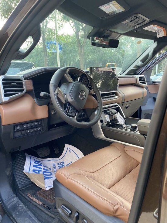坦途 23款 3.5T 1794 汽油最顶配1794版比铂金版配置多了:外观专属镀铬装饰、独家环保半苯胺内饰棕色真皮、副驾驶1794限量标识1794版比LTD越野版配置多了:360环车影像、拖车包(车道辅助)、JBL音响12个喇叭、主动降噪、数码显示Homelink防眩目后视镜、电动方向盘、全液晶仪表盘、抬头显示、氛围灯、后排座椅加热、半苯胺环保真皮座椅、主驾驶10项电动调节、4项腰部支撑、后排座椅通风、感应雨刷、电动伸缩后视镜、高功率三光束LED大灯、自动大灯调节详细配置:电眼、RCTA倒车盲点监测、360环车影像、电子制动力分配、防抱死系统、制动辅助、车身稳定、智能停止技术、牵引力控制、丰田2.5智能行车系统(雷达测距;车道追踪辅助;左右行人和车检测;迎车检测;预碰撞转向辅助;摇摆警告系统等)、胎压监测、12伏电源、尾门独立释放开关、无线充电、拖车包(车道辅助)、Apple CarPlay、无线安卓、14英寸中控屏、JBL音响12个喇叭、USB充电、122升油箱、389匹马力、10速变速箱、电子手刹、3.5L双涡轮V6发动机、主动降噪、重型拖车包、三种驾驶模式、400W货床电源、数码显示Homelink防眩目后视镜、方向盘加热、电动方向盘、前后座椅加热、双区自动空调、全液晶仪表盘、抬头显示、氛围灯、前排座椅通风、主驾驶记忆、后排座椅加热、半苯胺环保真皮座椅、主驾驶10项副驾驶8项座椅、4项腰部支撑、后排座椅通风、感应雨刷、外加热后视镜、电动记忆防眩目折叠伸缩后视镜、高功率三光束LED大灯、自动大灯调节、LED雾灯、LED日间行车灯、全景天窗、P265/60R20轮