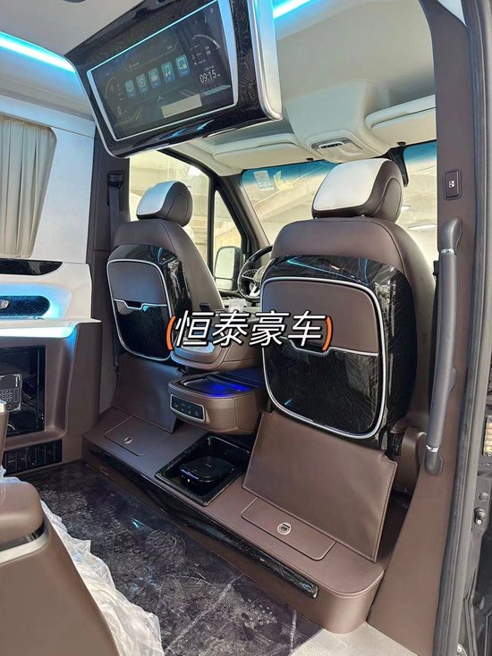 新款奔驰斯宾特车身尺寸长宽高:5.93*2.02*2.83米,汽油版,排量2.0T带涡轮增压,功率188HP(已测试,动力完全够用),油箱84L,变速箱9速自动变速箱。新款的斯宾特2500增加了无钥匙启动功能,驾驶室视野宽广,多功能方向盘真皮与桃木双拼,操控性好。新款奔驰斯宾特外观上变化最大的是前脸大灯,从敦厚演变成了运动,奔驰斯宾特的高为2米9左右,测身两边贴花让高大的车体不那么单调。原厂17的轮毂也被我们换成了19寸锻造轮毂,让宽大的车身行驶起来更加的安全可靠。