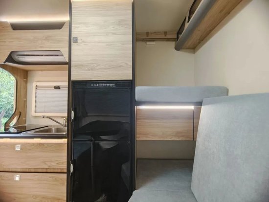 厨房区配置齐全,除了基础的厨房设施,还配备有98L房车专用冰箱,保障食材的新鲜,为用户提供更多想秀厨艺就秀厨艺的机会。