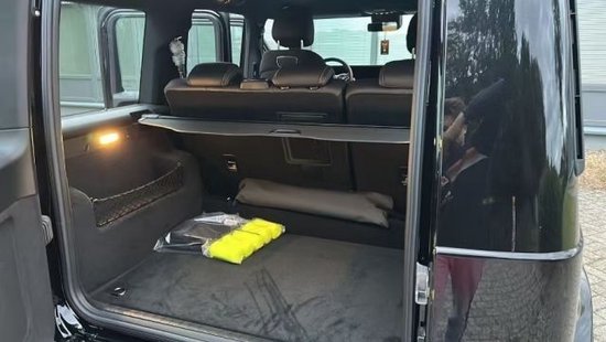 23款欧版奔驰G500 (配置|询价) 无豪车消费税,不改车架号 黑/黑 标配:汽油4.0T,422马力,V8发动机,610扭矩,9速,四驱,主副驾真皮电动,前后排加热,金属漆,悬挂前双叉臂后整体桥,黑色护板,一键启动,液晶仪表,越野屏幕,大灯清洗,后隐私玻璃,LED头灯和尾灯,外后视镜电动加热,主驾侧自动调暗,感应雨刷,定速巡航,纳帕皮革多功能方向盘,具有 64 种颜色和 10 个色区的环境照明,备胎罩,自动气候控制,前排座椅和头枕的记忆功能,无框内镜,宽屏驾驶舱,主动车道保持辅助,前后电眼,倒影,胎压控制,18轮,100升大油箱,球形拖车钩,胡桃木内饰装饰(仪表台下方、门板、扶手)