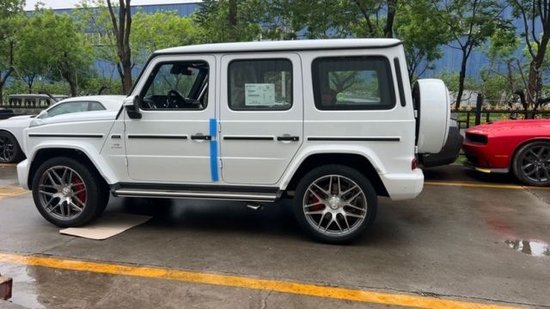 23款奔驰G63 (配置|询价)韩版 白棕 配置:独家内饰包,22轮,红卡,GT旋钮,红色安全带 涡轮 V8、585匹马力、9速手自一体可变悬挂、雷达测距、前后电眼、360环影、滑动天窗、AMG运动外观套件、一键启动、踏板、电动真皮多功能方向盘带记忆、换挡拨片、全液晶仪表盘、主副驾驶电动座椅带记忆、前后座椅加热、柏林之声音响、几何多光束LED大灯、64色氛围灯、大灯清洗、电动折叠加热后视镜、感应雨刷、并道辅助、车道偏离预警、胎压监测