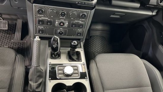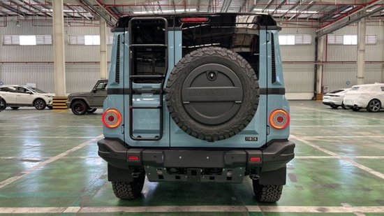内饰方面,取消了仪表盘的设计,配备12.3英寸中控大屏,下方为空调出风口,而且车内保留了大量的实体按键,两幅式多功能方向盘造型时尚,下方有着密密麻麻的物理按键和旋钮,用于控制灯光、座椅加热、空调调节等功能,越野功能按键如前锁、后锁、越野模式等按钮集成到了后视镜位置,中央通道部分则是机械手刹和宝马的鸡腿挡杆,机械式手刹以及空调控制面板等元素,处处透露着朴素的越野车风格。新车的座椅采用五座设计,座椅由皮革和织物材质拼接而成,并带有简洁的缝线,更具实用性。