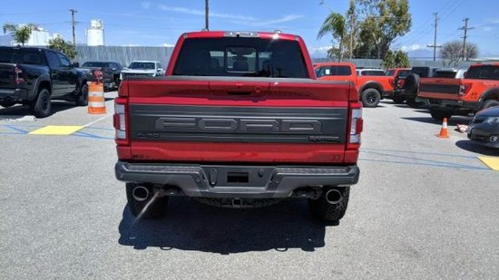 2023款福特猛禽F150皮卡巨大的长方体蜂窝式格栅中间镶嵌着福特的大标,再加上全新设计的保险杠和发动机舱盖,使车头拥有了震撼的冲击感。整体车身肌肉感十足,威慑力表现的淋漓尽致。车头给人一种很凌厉的气势,简约的线条勾勒出大而气派的感觉。