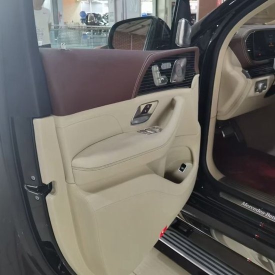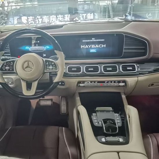 奔驰GLS450改装的迈巴赫GLS600,其中第二排独立座椅相比普通版GLS更加靠后,并且带有巨大的腿拖,其后排座椅最大倾斜角度大43.5度,后排腿部空间最大达1.34米。便捷式商务桌板,放置电脑、文件等物品。