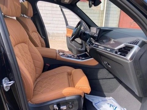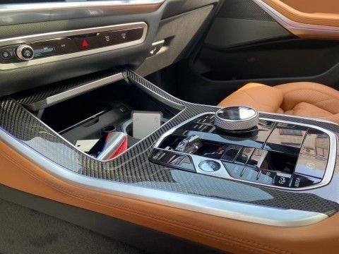 23款宝马X5内饰设计更高档,采用三辐式多功能方向盘设计,仪表盘跟宝马X7 (配置|询价)基本一致,采用无框后视镜设计,中控台底部还配备了无线充电功能。中控功能键盘也重新设计,中控出风口中间还配备了一块小尺寸液晶屏,上面显示一些空调温度和风量。出风口两侧的风量滑轮更精致。
