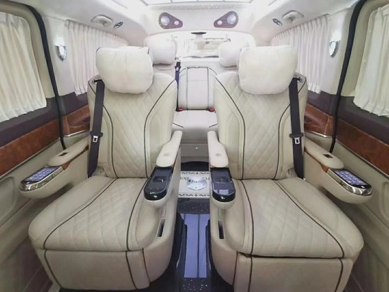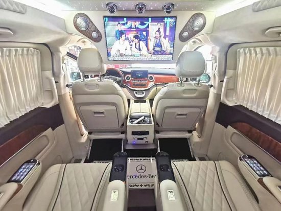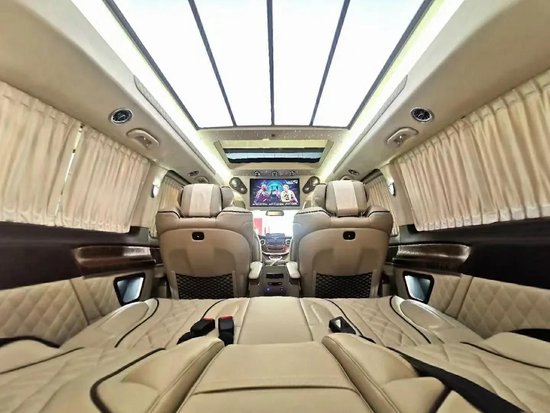 外观来看:前脸采用的是迈巴赫同款外装,独有的时尚元素,简洁典雅的外形,形成了自己独特的前脸风格,这种外观集合了科技感与时尚感,非常具有辨识度。奔驰原车高度1.92米,这款车子加高了14公分,现在高度2.06米,这种设计使得整车空间有了很大的提升,同时从外观来看,显得更加大气,不再是简单的“面包”了。