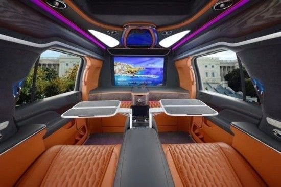 2023款林肯领袖一号后排的老板的航空座椅了,支持3档按摩,座椅的通风,加热,多段式的腿托,柏林之声的音响让你在出行还是商务的时候,都可以舒缓压力放松心情带来天籁般的感受,氛围灯可以多种颜色的切换,全看老板心情,后面前后双电视可以看任何大片,电动窗帘,电动的桌板还有咖啡机都是标配,老板座椅对面还有两个可以折叠的秘书座椅,整车采用4+2的布局,不需要使用可以电动收回,座椅中间的屏幕可以控制后排所有的娱乐设施,不仅有窗帘,玻璃也能一键雾化,保证隐私,法国的柚木地板也是非常的昂贵。