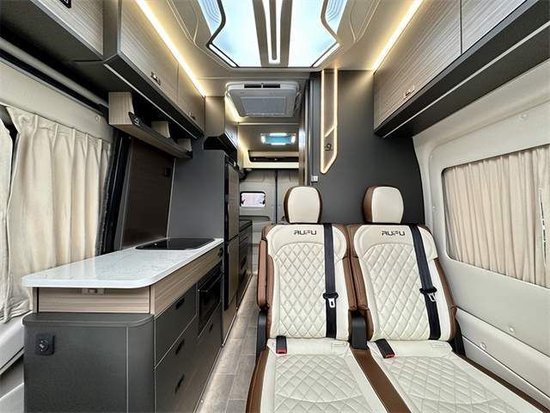 水箱容积:145L高强度异形PE清水箱 (_详情垂询:l33-2195-6679_)(含50L室内防冻清水箱)、70L高强度异形PE灰水箱、50L高强度异形PE黑水箱(手动排污阀)电力配置:原厂双发电机14V180A+56V70A、5000W车载高频逆变器、48V/200Ah钾电池(含低温电加热)、580W太阳能板(选配)其它生活设备:房车专用148L双开门冰箱(48L+100L)、进口5kW燃油暖风热水一体机(含高原模式)、48V变频行驻车一体顶置空调等设施