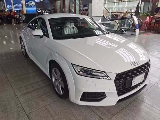 奥迪TT外观方面,整体延续了TT RS系列家族式力量型的轮廓造型。前脸熏黑的中网搭配獠牙式的LED日间行车灯,还有延续至前脸中网且有一定弧度的发动机盖板,整个前脸造型营造出一种蓄势待发的俯冲感。当然,与众不同的地方还得看黑色的品牌LOGO,它算是整个前脸的点睛之笔