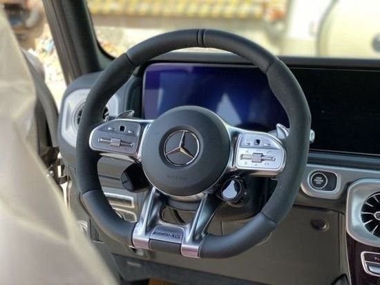 23款奔驰G63内饰方面,奔驰的设计绝对可以用惊艳来形容,无论是经典车型还是超豪华车型甚至是入门级的豪华车上,奔驰的内饰都会让你眼前一亮,当然了这也是奔驰的一个特色。所以这部全新的G63在内饰的表现上也是情理之中的,但是细节上还是有些小小的意外。这种感觉是打开车门的瞬间就能够感受到的。首先仪表和中控屏依旧是采用了同一款液晶屏显示,第一感觉就是科技感爆表。而其他方面例如方向盘,空调出风口,挡杆等等的设计充满设计感。