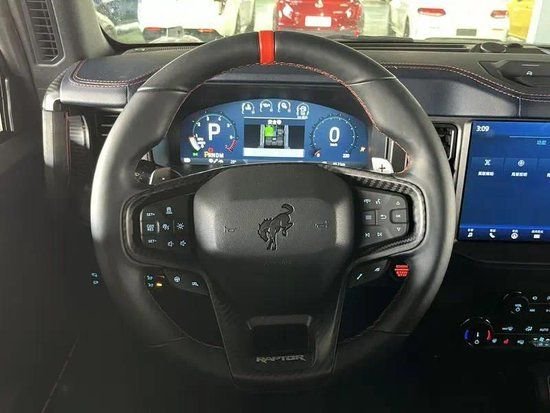 2022款福特Bronco烈马猛禽版3.0T的方向盘额外添加了碳纤维装饰。