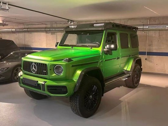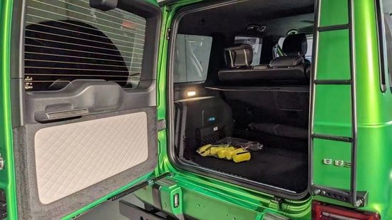 奔驰AMG G 63 (配置|询价) 4X4加宽了轮眉,新增加了车顶行李架,并还设置了专门的梯子可以方便拿取行李,尾部备胎也看上去更大,整个新车离地间隙变得更高,尾部还新增了一个辅助保险杠。肉眼可见的越野性能全面提升。作为全新一代的升级,新车拥有G 63车型的包围和AMG专属的Green Hell Magno车漆,展现出强大的性能。