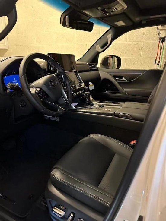 2023款雷克萨斯LX600采用了对称式中控台设计,继续提供液晶仪表和HUD抬头显示等配置,并首次加入双屏显示器,该中控屏由12.3英寸的上屏和7英寸的下屏组成。另外,车辆启动按钮被设置在了中控屏一侧,并首次配备了指纹识别。