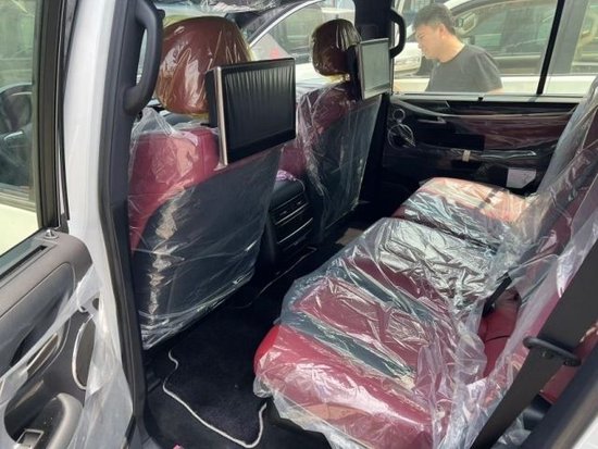换挡拨片、铝制行李架、限量包(前后大包围、黑色大中网、钢制油门/刹车脚踏板、车门迎宾灯)、S限量花纹脚垫、后包围镀铬、镀铬尾喉、外置拖车钩、138升双油箱、遥控启动、车身防擦条、副驾驶灭火器、流水转向灯、金属漆、Logo地射灯、21轮、冰箱、天窗、智能卡、电眼、环影、后娱、底盘升降、前座椅通风加热(真皮)、导航、多功能桃木真皮方向盘、桃木内饰、航空照明脚踏、LED 氙灯、大灯清洗、迎宾灯、四区空调、三排电动、电尾门、后座椅通风、车道保持、并道辅助、二排遮阳帘、后牌照盖带LED灯。