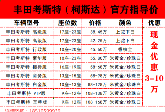 丰田考斯特厂家直销:18510599939 彭经理同微信