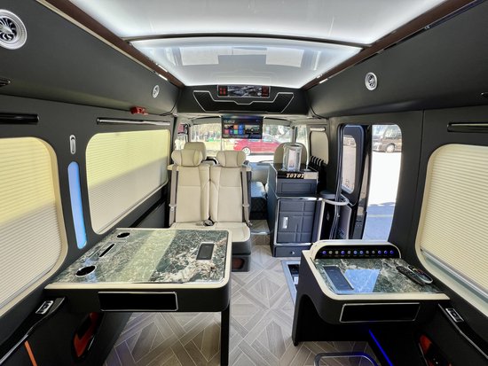 商务车内可以设立独特的商务接待区,提供专属接待服务。商务接待区可以配备小型茶具、饮品、花卉、书籍等,以为乘客提供舒适而高质量的商务接待服务。