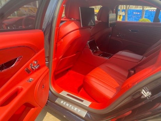 全长中控台(4 座配置) ,无对比缝线 ,无手工十字绣,头枕刺绣-隐藏色,加热、单色、3 辐、隐藏装饰方向盘 ,B黑色立标 ,带双百叶窗和梳妆镜的全景玻璃倾斜和滑动天窗 ,LED迎宾灯 ,新鲜空气吸入和空气电离器 ,宾利后排娱乐 ,标准音频系统 ,感应式手机充电器(前排) ,宾利三面旋转屏 ,前后加厚地垫