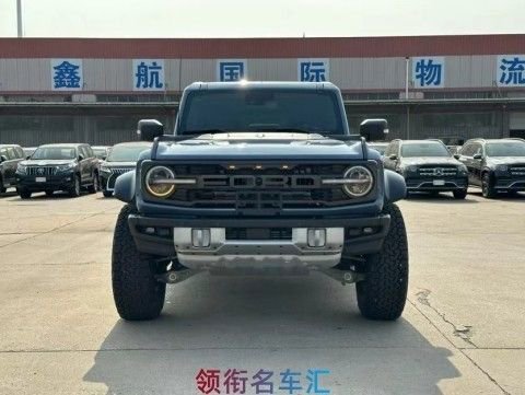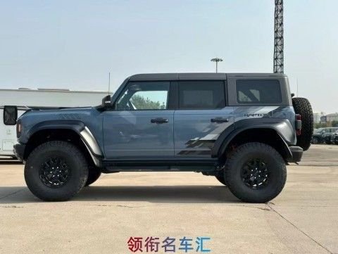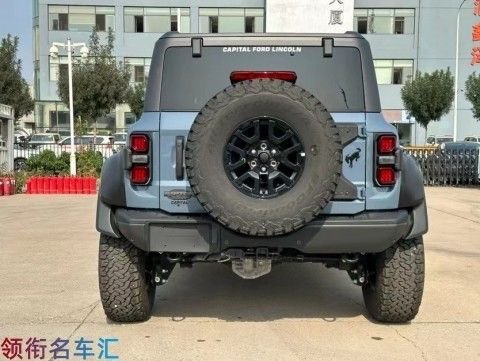 23款福特烈马猛禽版外观车头前脸换装了猛禽版本特有的Ford福特进气中网,取消掉原来的bronco 英文字母车标。不过两侧原厂大灯没有动,还是偏复古风格的圆形大灯,中间穿插一道灯带装饰确实和坦克300 (配置|询价)比较类似。车身侧面是框架式结构,而且搭配了模块化可拆卸车顶以及车门,尾部悬挂全尺寸越野轮胎仅仅轮胎就达到37英寸。