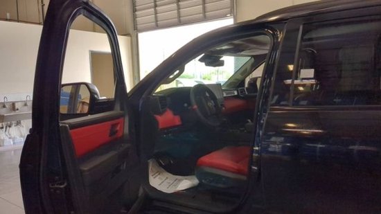 2023款丰田红杉3.5T新车内饰采用了全液晶仪表盘与四辐式多功能方向盘,并搭配了悬浮造型中控多媒体显示屏,整体内部的设计布局与坦途相差无几,并在中控台上保留了大量的物理按键,在营造科技感的同时不失传统的机械质感。此外,新车在空间布局上将提供7座座椅布局,进一步提升实用性。