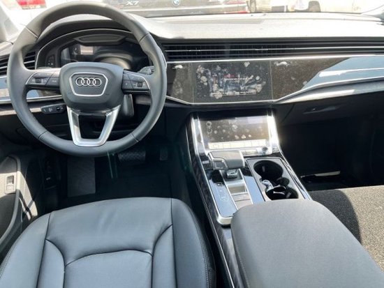 23款奥迪Q7 (配置|询价)家族全新设计语言,夸张的八边形一体式进气格栅,配六根垂直饰条,造型霸气立体、肌肉感十足。新车大灯造型具有超强辨识度,高清矩阵式LED大灯带有激光大灯,颜值和科技方面远超对手。
