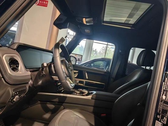 内饰设计方面,全新一代G级的内饰设计更加注重豪华氛围的营造,与上代G级车型的粗狂线条相比,内饰氛围年轻了许多。采用的是连体大屏,中控台上采用了非常硬气的轮廓,空调出风口采用了涡喷发动机式的风格,副驾驶一侧还有一个扶手设计。方向盘采用了运动化底设计,3/9点位置还采用了打孔皮质包裹,增强摩擦力的同时更是让视觉效果得到了明显提升,12.3英寸中央液晶屏并未搭载最新的奔驰MBUX人机交互系统,还在沿用Command系统,不过系统支持CarPlay互联功能。